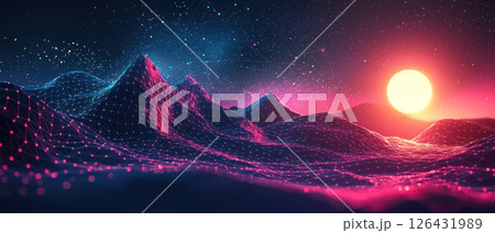 Waves of Glowing Energy Dance in a Mesmerizing Digital Landscape at Dusk. Generative AI