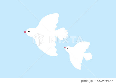 飛んでいる白っぽい水色の鳩の親子- 平和・Peace Day・停戦のイメージ素材