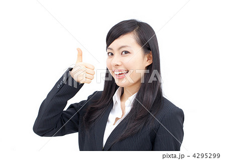 自然な笑顔でグッドサインをするスーツ姿の若い女性