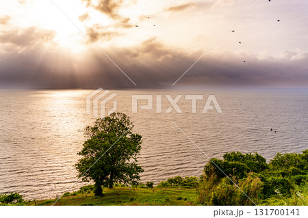 りんご岩(傘岩)の日没後夕焼け 柿泊海岸 ながさきサンセットロード パノラマ 【長崎市】