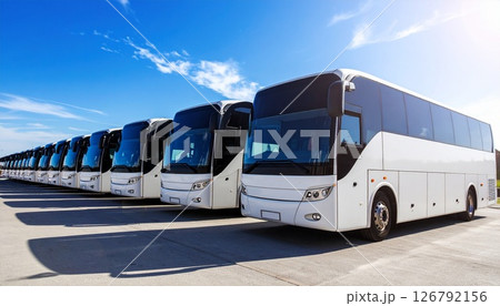 たくさんの観光バス 旅行イメージ