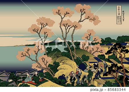 葛飾北斎イメージ東海道品川御殿山ノ不二明るいバージョン縦白バック