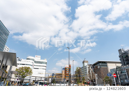 京王線調布駅 駅前の景色を眺める 春の青空 東京都調布市小島町