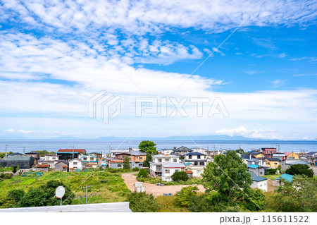 道の駅YOU・遊・もり 展望ラウンジよりオニウシ公園・噴火湾を望む