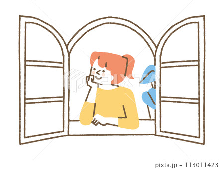 シンプルな人間のアイコンシリーズ 「窓から外を見る人」
