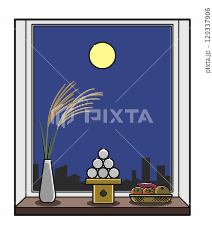 窓辺のお月見(水彩風)