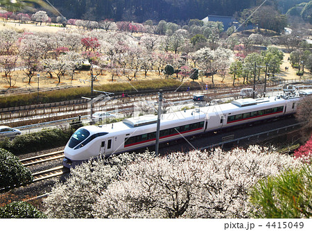 偕楽園の梅と好文亭と常磐線を走るスーパー日立