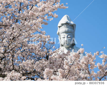 群馬県高崎市 観音山公園の満開桜と高崎白衣大観音
