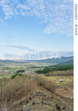 観音桜風景 観音桜公園芝生広場(展望所)から観える絶景風景(阿蘇郡南阿蘇村)