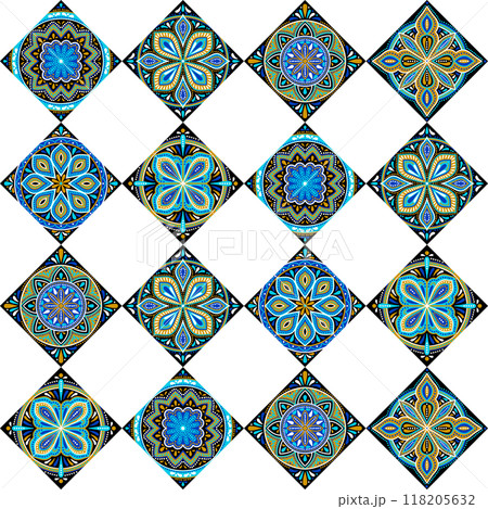 ポルトガル風タイルパターンカラフル幾何学模様