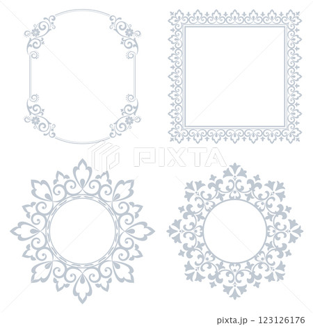 Set of decorative frames Elegant vector element for design in Eastern style, place for text. Floral gray and white borders. Lace illustration for invitations and greeting cards