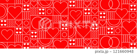Valentine's day abstract geometric seamless pattern bauhaus. Mosaic minimalist background, banner, template with simple shapes, hearts.