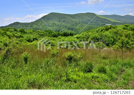 丹沢の鉄砲木ノ頭(明神山)より 夏草生い茂る山地より望む富士山