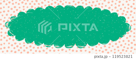 Oval shape with scalloped torn edges. Grunge style circle frame with wavy ripped border. Color vector collage form vintage silhouette spotted pattern background