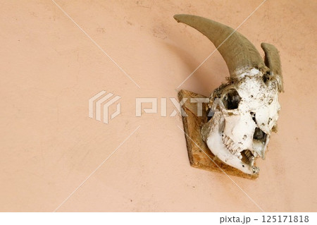 A Stunning Decorative Animal Skull Expertly Mounted on the Wall for Artistic Appeal