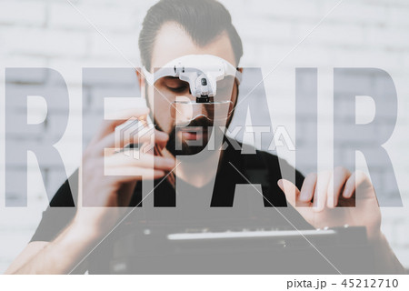 Side view of mechanic doing repairs Smartphone motherboard, smartphone repair, circuit repair