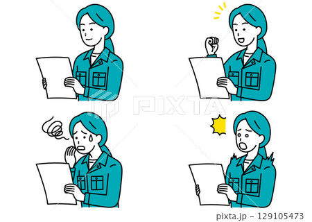 書類を見るつなぎ作業服の男性 セット