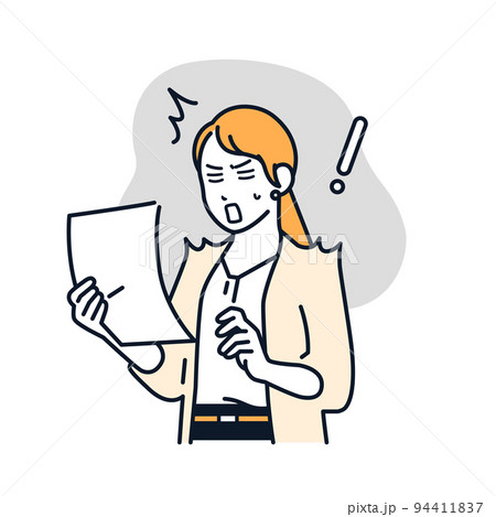 書類を見て驚くスーツの女性のベクターイラスト素材