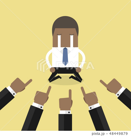 Ashamed. Problem man pointing to businessman ashamed guilty conflict foolish people fear employee vector concept