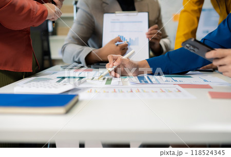 Business team analyzing financial data and discussing growth strategies during a productive meeting in a modern office. Business people concept