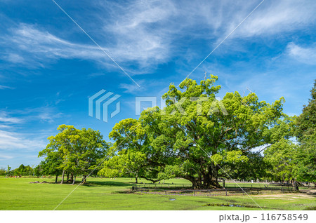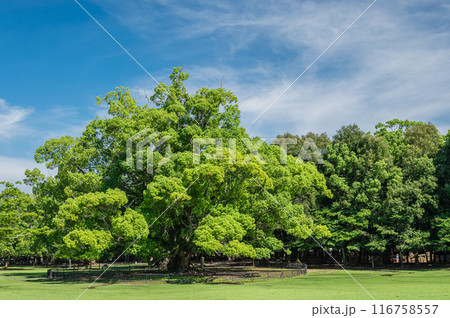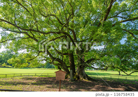 日本の寒川都市景観 相模國一之宮 寒川神社。天皇皇后両陛下幣饌料御下賜記念植樹=令和6年7月21日