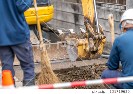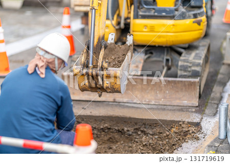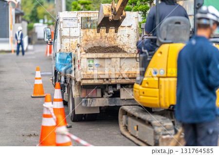 工事現場 道路 掘削 土砂 積込 安全管理 パイロン 立入禁止