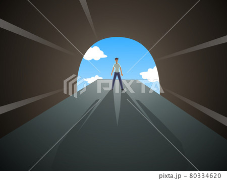 トンネルの入り口で立ちすくむ男性