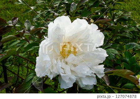 岩手県花巻市宮沢賢治記念館 イーハトーブ館の庭に咲く牡丹園の白いボタン