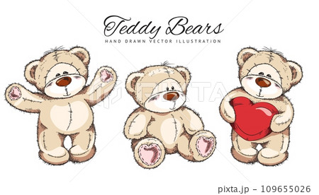 Cute hand drawn teddy bear toy set, sketch vector illustration isolated on white background.