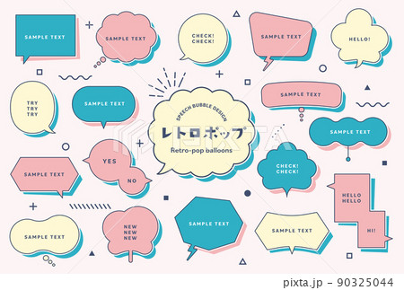 シンプルでポップな吹き出しセット06 レトロポップ / 線幅編集可能 複合シェイプ /