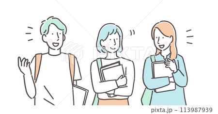 友達同士でお喋りをする男女の大学生のイメージイラスト素材