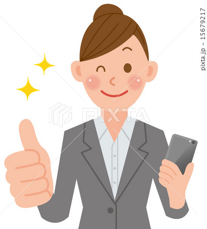 女性イラストセット/グッド/親指を立てる(スーツ)