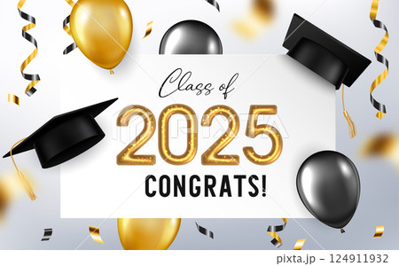 Graduation celebration with a golden cap and the word congrats in cheerful font