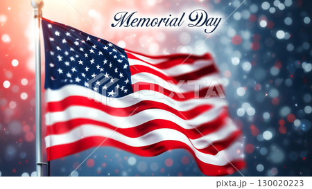 American flag waving against a sunset scene background. Concept of Memorial Day, Remember and Honor