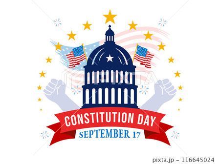 Happy Constitution Day United States Vector Illustration Vector Illustration on September 17th with an American Waving Flag and the Capitol Building