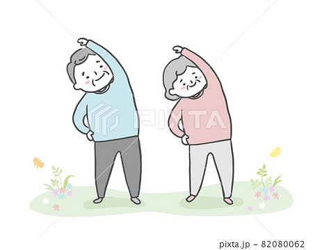 ウォーキング、運動するシニア夫婦のベクターイラスト
