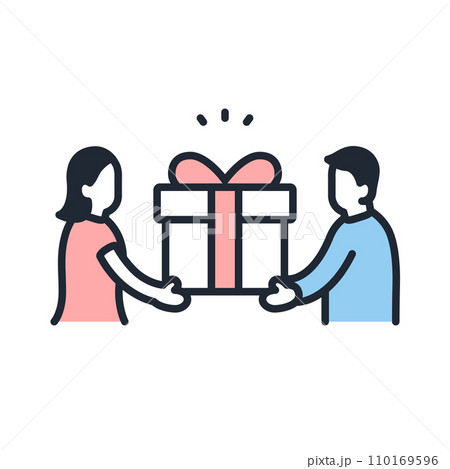 男性へプレゼントを渡す女性のシンプルなベクターアイコンイラスト素材