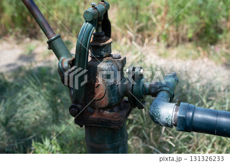 昭和時代井戸水を手漕ぎポンプで汲み上げる