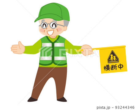 登下校の見守りボランティアをする高齢男性 イラスト