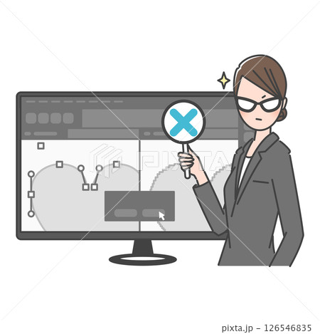 イラスト素材:ストックイラストを審査するスタッフ。×判定(NG・却下・リジェクト!)