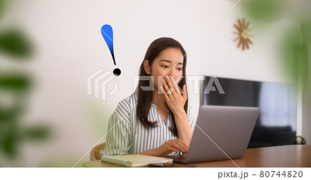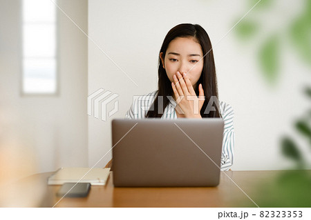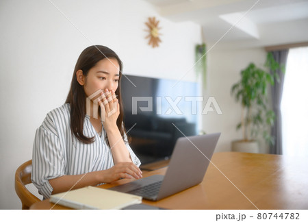 郵便物を見て悩む女性 疑問、悩み、トラブル、詐欺