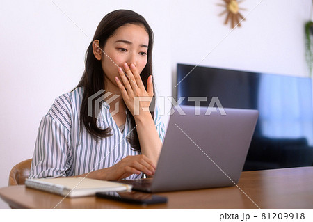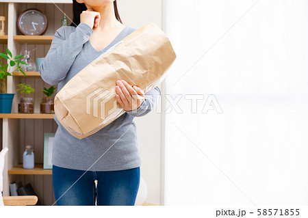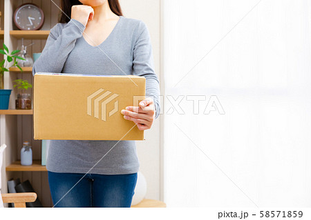 荷物を開封すべきか悩む女性 コピースペース 16:9