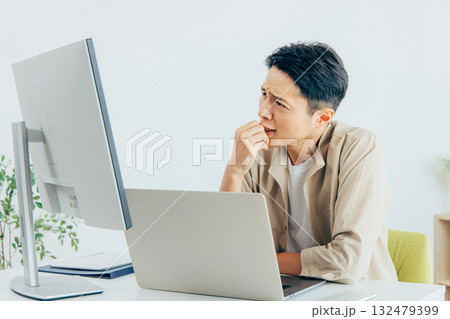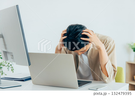 パソコン作業で頭を抱える男性会社員