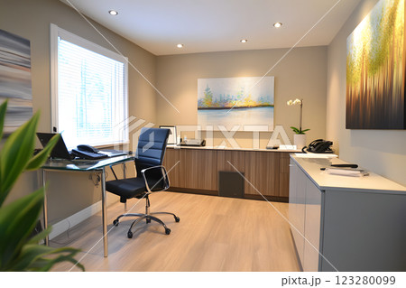 モダンリビングルームの夕焼けに照らされた温かいインテリア