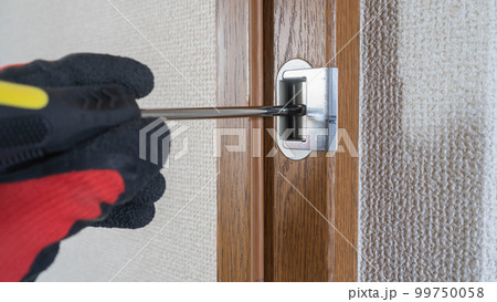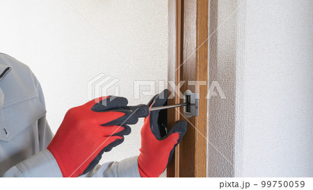 ドアノブの修理・調整をする作業員
