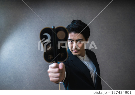 軍配を持ったビジネスマン