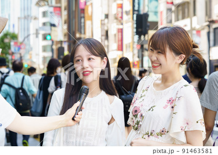 街頭で取材するテレビクルー 歩行者天国での街頭インタビュー