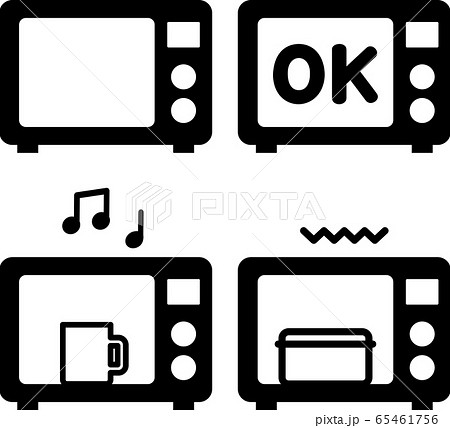解凍が完了した電子レンジのアイコン。OKサインと電子レンジのシルエットアイコン。ベクター。
