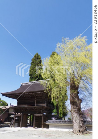 信州 諏訪の寺院 江音寺の春の光景 山門とシダレヤナギ