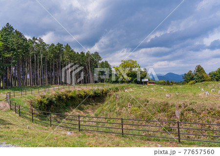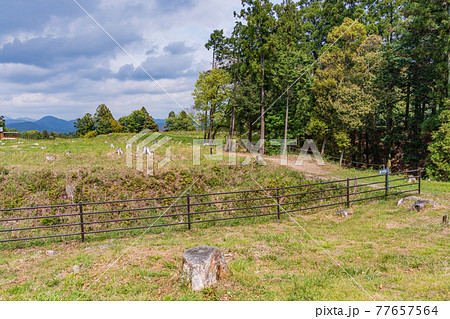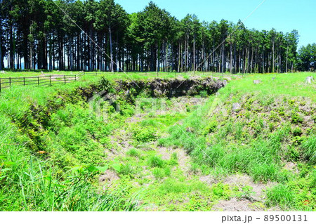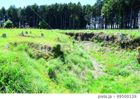 大手曲輪跡 牧ノ原台地に広がる茶畑に遺る諏訪原城跡(戦国時代の城跡、武田方の山城)